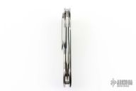 This Commander XL framelock flipper by Frank Fischer features a satin finished spear point recurve blade with notched thumbrest and flipper. The handle has an orange peel finished titanium frame with integral bolster and carbon fiber inlay and tip down titanium clip with hidden screws. Nice detent, lockup and blade seating. Excellent condition.