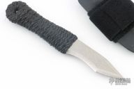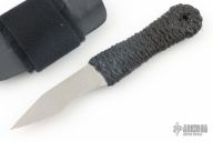 This Fixed Blade by John Gray features a chisel ground satin finished blade with false top edge, .068" blade stock and .895" blade depth, full tang construction with epoxied black cord wrap. Comes with a black kydex sheath with velcro strap. Excellent condition.