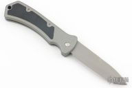 This Side-opening coil spring automatic by Paragon features a bead blast drop point blade. Gray aluminum frame with rubber inlays. Has some light scuffs, otherwise excellent condition.