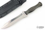 The T-6 Dagger by Mike Irie features a hand rub satin finished blade with full tang construction, 0.197" Blade Stock and 1.226" Blade Depth. The handle has micarta scales and a lanyard hole. Comes with a kydex sheath with belt loop. Has a couple light scuffs, excellent condition otherwise.