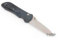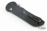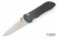 This Stryker by Benchmade has a stonewashed tanto blade with dual thumbstuds and a notched thumbstud. The handle features black G10 scales over steel liners with black tip up clip. Includes the original box, drawstring pouch and papers. Has some light scuffs, and scratches, has a little oxidation on the blade, is a bit dirty. Great user condition otherwise.