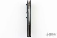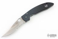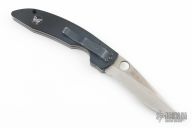 This 800S Linerlock folder by Benchmade has a satin finished blade with partial serrations, thumb hole, and notched thumb rest. Handle is black G10 over titanium liners, black fiber back spacer, lanyard hole, and black stainless steel tip down clip. Comes with benchmade 800 box and papers. Has scuffs, scratches, has been resharpened. Fair condition: good user condition.
