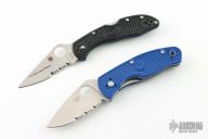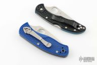 The “Thin Blue Line” is a symbolic reference to the role of law enforcement as the barrier that prevents society from descending into violent chaos. To honor the service and sacrifice of our nation's police officers, Spyderco created the “Thin Blue Line” series, which showcases unique versions of some of our most popular lightweight knives. The tough, fiberglass reinforced-nylon (FRN) handle scales of these knives are injection molded in black accented by a bright blue lining. When assembled with a matching blue FRN backspacer, they create a compelling visual metaphor for the “thin blue line.” Unlike the standard expressions of these models, the VG-10 stainless steel blades of these knives also combine the low-friction edge geometry of a full-flat grind with the extreme cutting power of Spyderco serrations. They are also laser engraved with the motto “To Serve and Protect” to honor the service and sacrifice of law enforcement professionals. This compact Delica 4 Lightweight showcases a full-flat-ground CombinationEdge blade in a Thin Blue Line FRN handle.