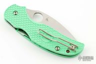This C123PGRM4BK by Spyderco Knives features a satin finished blade with thumb hole. Mint FRN scales, stainless steel liners and tip up (right or left reversible) black stainless steel clip. Includes the original box and papers. New condition.