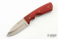 This hunter by Case features a satin finished blade with .139" blade stock and 1.208" blade depth, full tang construction. The handle has red wood scales with brass pins. Has a couple light scuffs, excellent condition otherwise.