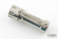 This Mule Titanium flashlight by McGizmo features full titanium construction, with pocket clip and clicker bar at the butt. Excellent condition.