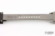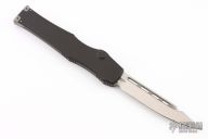 This Halo VI by Microtech knives features a satin blade with fullers. The handle has a black aluminum frame with blasted stainless steel hardware and charging handle. Dated 08/2018 and #2067.  Comes with kydex sheath. Has a couple light scuffs, excellent condition otherwise.