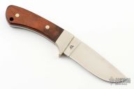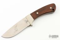 This hunter by Case features a polished finish blade with .108" blade stock and 1.35" blade depth, full tang construction. The handle has a nickel silver guard, wood scales with sterling pins. Has a couple light scuffs, excellent condition otherwise.