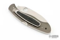 This Civilian lockback folder by Spyderco has a satin reverse "S" fully serrated blade and an aluminum handle with Tuffram coating and non-slip overlay. Stainless steel clip with non-slip overlay. Blade Steel G-2. Comes with a zipper case. Has a couple light scuffs on the blade and frame, otherwise excellent condition.