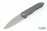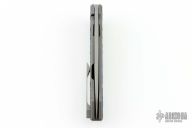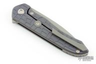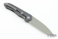 This Servo by Brown Knives features a tumbled drop point blade and flipper. The handle has an anodized and milled titanium frame, mokuti backspacer, over travel stop and tip up clip with hidden screws. Nice detent, blade seating and lock up. Rides on bearings. Comes with original hard case with COA. Excellent condition.