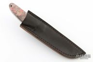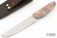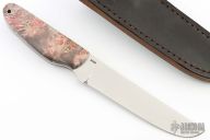 This tanto from Stek Knives features a mirror polished blade with .119" blade stock and 1.172" blade depth, full tang construction. The handle has burl scales with mosaic pins. Comes with a leather belt sheath. Excellent condition.
