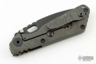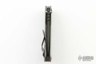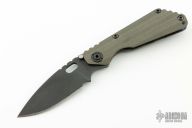 This SnG CC by Strider Knives features a black blade and smooth green G-10 with a flamed titanium frame and tip up clip. Notches on thumbrest, rear of handle, and lockup. Includes Hinderer "Lock Bar Stabilizer" for maximum reverse lock retention. Has black hardware. Comes with a zipper case. Has scuffs and scratches, and some light oxidation on the blade edge. Great condition otherwise.