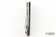 This SJ75 Baby Huey framelock folder by Strider Knives has a tumble finished blade and a black G-10 and tumbled titanium frame with tip up titanium clip. File work on blade spine and inner edges of frame along the spine.  Nice detent, lockup and blade seating. Comes with a zipper case. Has a couple light scratches, otherwise Excellent Condition.