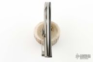 This Heat Seeker is a Tashi Bharucha design made by Massdrop features a hand rub satin finshed blade with flipper. The handle has a carbon fiber scale, bead blast finished titanium frame with matching tip up clip. Comes with original box, zippered case and card. Has scuffs and scratches, great condition otherwise.