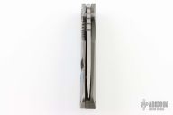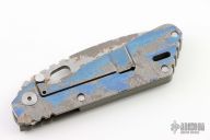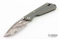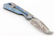 This PT CC by Strider features a digicam blade with notched thumbrest and thumbhole. The handle has green G-10 and digicam titanium frame. Excellent condition.