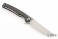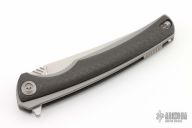 This model 704 by We Knife Company features a bead blast finished upswept blade with notched thumbramp and flipper tab. The handle has a titanium frame with carbon fiber scales. Titanium backspacer with lanyard bail, slot and hardware for a tip up clip. No clip. Has a couple light scuffs, excellent condition otherwise.