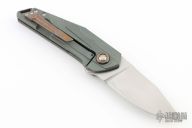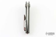 This Blitz Prototype by Jens Anso is #01 of 4 that were made. The handle has a hand rub satin finished blade with flipper. The handle has a milled, anodized and tumbled titanium frame with Timascus pivot collars, backspacer, and tip up clip. Marked "PROTO 1" inside the frame. Has a couple light scuffs, excellent condition otherwise.