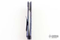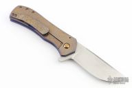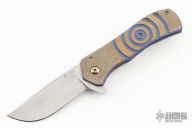 This Recon flipper by Doc Shiffer features a hand rub satin finish blade with notched thumbrest and a flipper. The handle has a milled, textured, anodized titanium frame and matching tip up pocket clip. Comes with COA, and maker's card Nice blade seating, detent and lockup. Excellent condition.