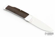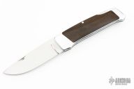 This Interframe Lockback by John LeBlanc features a mirror polished blade with nail nick. The handle has an aluminum frame with black linen micarta inserts. Nice seating and lockup. Has some light scratches, otherwise excellent condition.