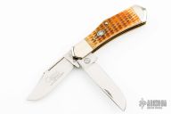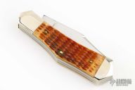 This knife by Cripple Creek has 2 mirror polished blades with nail nicks. The handle has nickel silver bolsters, jigged bone scales, brass liners and stainless steel springs. Has a couple light scratches, otherwise excellent condition.