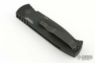 This TR-2 has a black finished blade and a black aluminum handle inlaid with a sterling silver skull designed by Bruce Shaw. Black stainless steel button and clip. Serial number 5 of 200. Comes with original box, sheath and papers. Excellent condition.