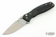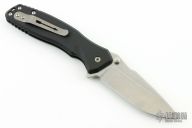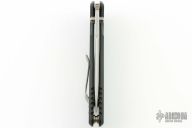 This PALLAS button lock from Spartan Blades features a tumble finished clip point S45VN blade with swedge, dual thumb studs, notched thumb rest and flipper. The handle has a milled and black anodized aluminum frame over stainless steel barrel spacers. Titanium tip up clip and lanyard hole in pommel. Excellent condition. Comes with original box.