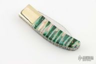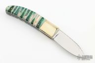 This slipjoint by "Laurenson" features a mirror polished blade with fileworked spine. The handle has nickel silver bolsters, mammoth ivory covers, stainless steel liners and fileworked spring. Nice blade seating. Has a couple light scratches, otherwise excellent condition. Dated 2010