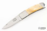 This Lockback by TD Bennett features a mirror polished blade with nail nick. The handle has dovetailed nickel silver bolsters, gold lip pearl scales, stainless steel liners and backspacer. Has a couple light scratches, otherwise excellent condition.