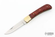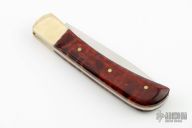 This slipjoint by M Snapp features a mirror polished blade with nail nick. The handle has nickel silver bolsters, curly maple covers, brass liners, stainless steel spring. Has a couple light scratches, otherwise excellent condition.