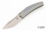 The Krypton was designed by Tashi Bharucha and manufactured by Reate Knives. This knife features mokuti inlays, a titanium frame and a matching tip up titanium pocket clip. The blade is made from American CPM-145 stainless steel, which is widely considered one of the best EDC knife steels, thanks to its edge retention and ease of sharpening. The knife opens with the use of Lee Williams' Kick Stop flipper, which is there when the knife is closed, but once it’s opened, disappears neatly into the handle to maintain those sweet, sweet lines. Comes with original zipper case and box. Excellent condition.