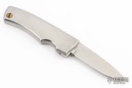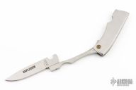 This Swinglock Folder by Explorer featurse a satin finished blade with notched thumbrest. The handle has a stainless steel frame. Has some scratches, otherwise good condition.