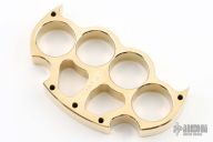 This Subcompact 4 finger brass knuckle by WK21 is made from solid .500” thick 360 Brass. The dimensions are approximately 2.5” x 4.375” x .5” with 1-inch diameter finger holes. Two-tone finish. Woody Knuckle design and finishing process. Individually boxed. 100% Made in the USA. New from maker.
