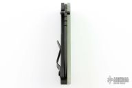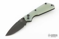 This Pro-Strider SnG Auto by Pro-Tech features a black blade with notched thumbrest. The handle has a jade G-10 and black aluminum frame with matching tip up clip.  Blade Steel: S45-VN. Has a couple light scuffs, otherwise excellent condition. Comes with original box and papers.