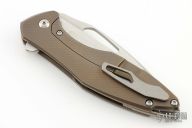 This Arius by Koenig knives features a Brightwashed w/ PF finished blade with thumbhole and flipper. The handle has a C-Patterned and anodized titanium frame with a stonewashed titanium tip up clip, stonewashed titanium backspacer. Has ceramic bearings and a ceramic detent ball. Nice detent, lockup and blade seating. Comes with original box and COA dated February 3, 2023. Excellent condition.