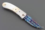 Damascus and Gold Lip Pearl Linerlock