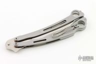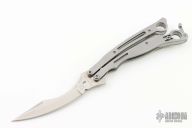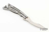 The Szabofly by Spyderco is no longer in production, if features a satin finish blade with swedge. The handle has bead blasted stainless steel handles with a spring loaded latch and a tip up reversible clip. Comes with original box and papers. Has a couple light scuffs, otherwise excellent condition.   #006