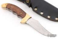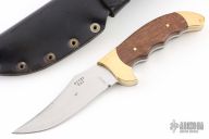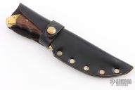 This Ripper from Rigid Knives features a satin finish blade with swedge, .157" blade stock and 1.150" blade depth, full tang construction. The handle has brass bolsters and rosewood scales. Includes leather sheath. Has some scratches, a small rust spot on the blade, otherwise good condition.