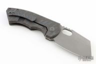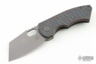 This Production Slim Mini by Berg Blades features a stonewash finished blade with notched thumbrest and thumbhole. The handle has a flamed titanium frame with matching tip up clip. Comes with original box and COA. Nice detent, lockup and blade seating. Excellent Condition.