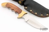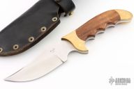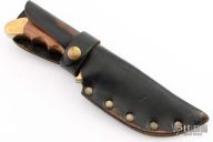 This Ripper from Rigid Knives features a satin finish blade with swedge, .207" blade stock and 1.530" blade depth, full tang construction. The handle has brass bolsters and rosewood scales. Includes leather sheath. Has some light scratches, otherwise excellent condition.