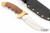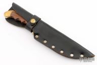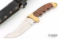 This Ripper from Rigid Knives features a satin finish blade with swedge, .163" blade stock and 1.554" blade depth, full tang construction. The handle has brass bolsters and rosewood scales. Includes leather sheath. Has some scratches, the tip is blunted, otherwise good condition.