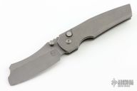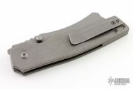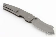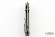 This Production Barber by Berg Blades features a bead blasted blade with notched thumbrest and dual thumbstuds. The handle has a darkened stonewashed titanium frame with a matching pivot collar, and a tip-up clip. Nice detent, lockup and blade seating. Includes the original box and papers.  Excellent Condition.