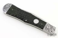 Bruce received his art training at Cal-State University at Los Angeles and is a graduate mechanical engineer. He started engraving in 1978 and has been engraving full time since 1984. Bruce spends around 60 hours of engraving time on each knife.