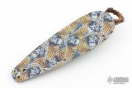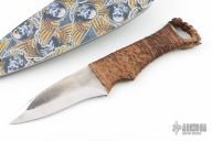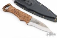 This knife has a satin finished blade. .152" Blade Stock. 1.186" Blade Depth. The handle has hemp cord wrap. Comes with a kydex sheath and the knife will fit in either direction. Has some light scuffs, otherwise good condition.