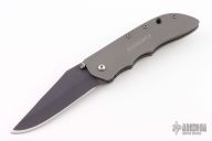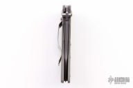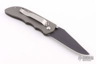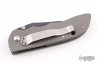 This Ghost linerlock folder by Allen Elishewitz features a black finished blade with dual thumb studs and notched thumbrest. Frame and liners are bead blasted titanium. Satin finished stainless steel clip, tip down carry. The backspacer is black G-10. Has nice lockup and blade seating. Has some scuffs on the frame, otherwise Excellent condition. Comes with a zippered case.
