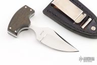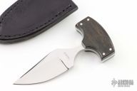 This Custom Push Dagger by Bob Salpas has a mirror polished blade with full tang, .172" blade stock, 1.068" depth. Handle has dymondwood scales. Comes with black leather sheath with boot clip. Excellent condition.