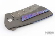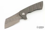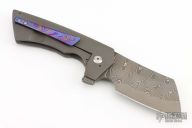This Jackson SD by Cobalt Customs features a San-Mai Damascus blade with swedge and flipper tab. The handle has a bead blasted and sculpted titanium frame with timascus tip up clip and backspacer. Comes with maker's zipper case. Excellent condition.