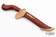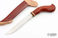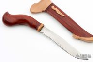 This knife features a satin finished blade, .179" blade stock and .926" blade depth, hidden tang construction. The handle is made of wood with nice contouring. Comes with a matching wooden scabbard. Has some scratches, otherwise excellent condition.