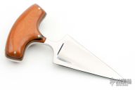 This Push Dagger by Alex Collins features double edge chisel ground blade with hollow ground B-side, .175" blade stock and 1.495" blade depth, full tang construction. The handle has paper micarta scales with aluminum pins. Has some oxidation on the tang, otherwise excellent condition.