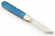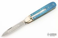 This Boker Leverlock features a drop point blade. The handle is comprised of nickel silver bolsters and dyed bone scales over brass liners and stainless steel backspring. Comes with original box and papers. Has some light scratches, and patina, excellent condition otherwise.