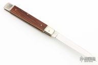This Lever Lock Automatic by Hubertus Knives features a polished drop point blade. The handle is comprised of nickel silver double bolster and lever with rosewood scales over brass liners and steel backspacer. Has some light scratches, otherwise excellent condition.